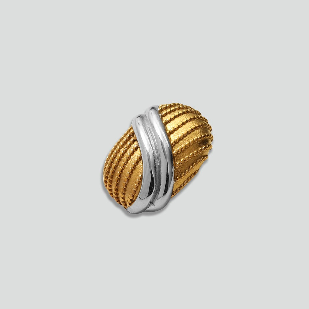A timeless statement in our dual-tone metal collection. For those who love to mix things up and value quality over quantity. Who says you can't wear both silver and gold?