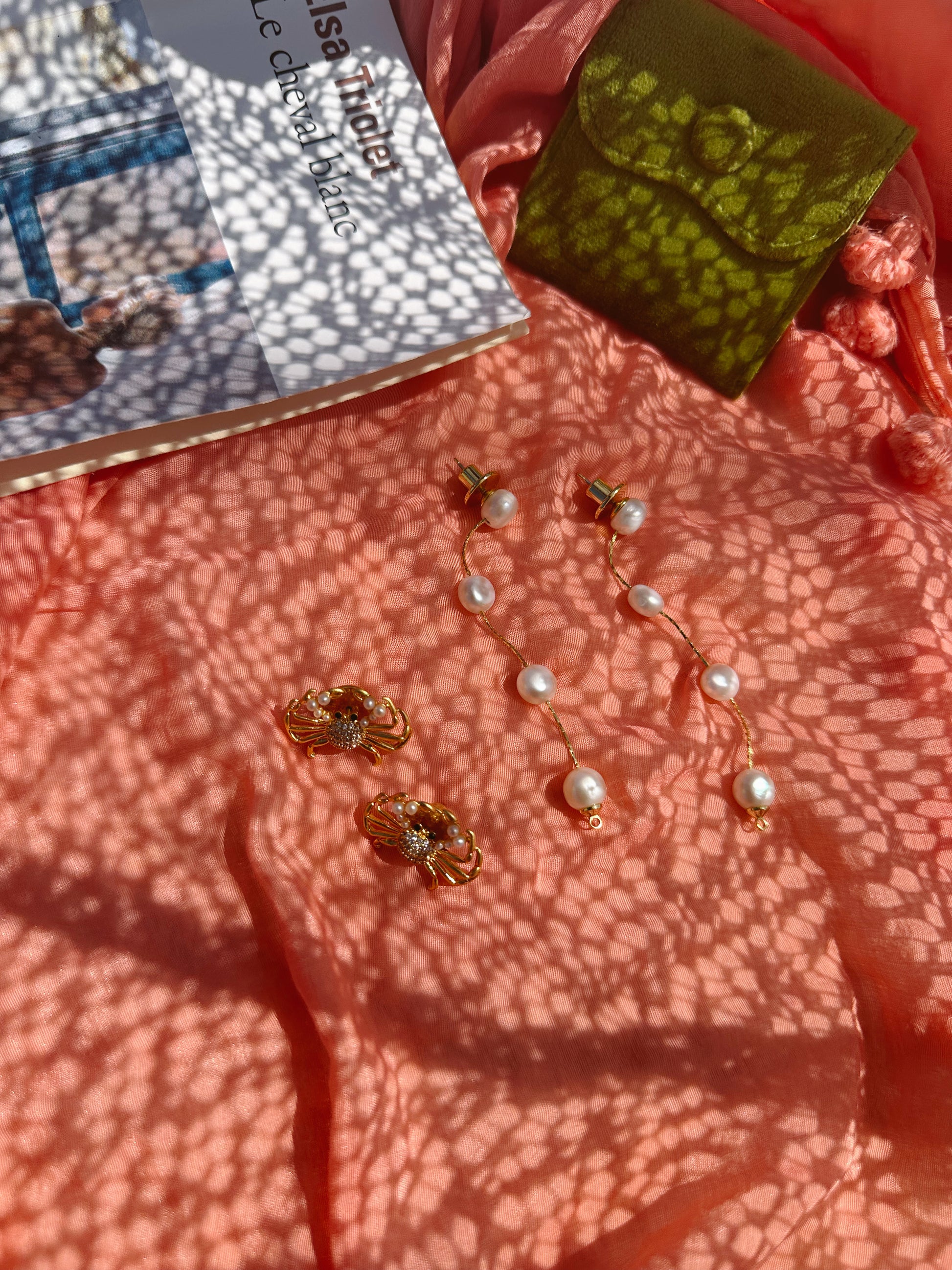 Crafted with 18K gold plating, these earrings feature intricate crab motifs with freshwater pearls. The design captures the essence of coastal charm and those always chasing the sun.